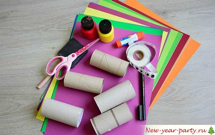 Целая, не разрезанная втулка станет туловищем для множества животных — собачек, волков, лисичек, снеговичков, оленей или Деда Мороза, всё зависит от имеющихся в наличии цветов краски и фантазии ребёнка. Картон подойдёт также и в качестве основного материала для вырезания или аппликаций — за счёт его толщины поделки получаются более плотными и меньше подвергаются риску случайно порваться.