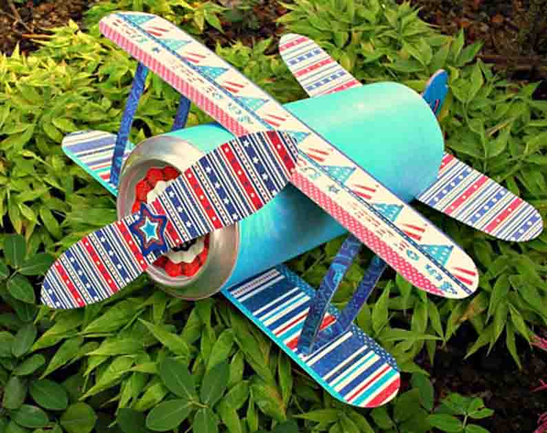 И еще один вариант: в качестве корпуса самодельного самолета использовать крашеную алюминиевую банку или пластиковую бутылку.