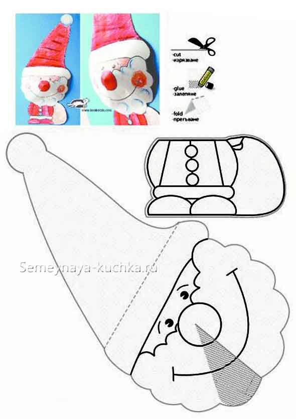 Вот интересный способ сделать Деда Мороза из картона – простая в изготовлении детская поделка