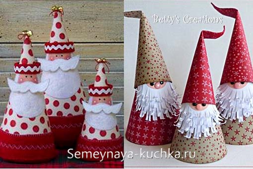 А вот Дед Мороз, сделанный из двух конусов – нижний ПАЛЬТО и верхний ЛИЦО С ШАПКОЙ.