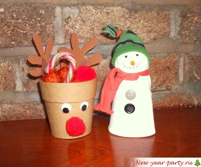 Хорошими новогодними украшениями станут и одноразовые стаканчики. Такая простая поделка может даже присутствовать на домашнем новогоднем столе, а не только в рамках мероприятий в школе.
