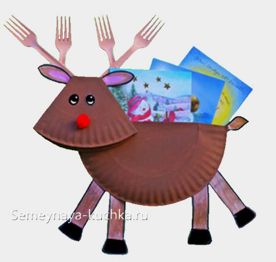 Вы можете вырезать из круга тарелки усеченную трапецию –и превратить ее в голову рождественского оленя.