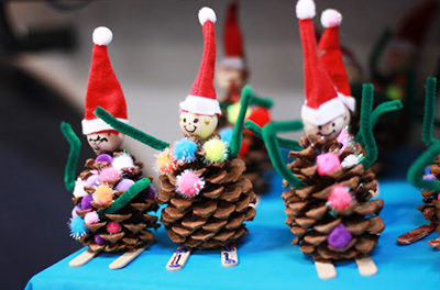 В частности, для того, чтобы сделать елочку, необходимо покрасить шишку в зеленый цвет. Также ее стоит приклеит к плотному картону, который будет служить подставкой.